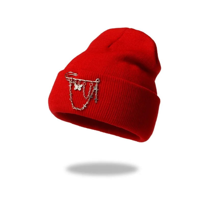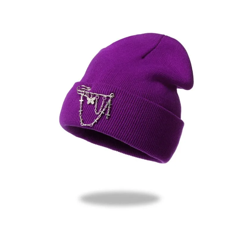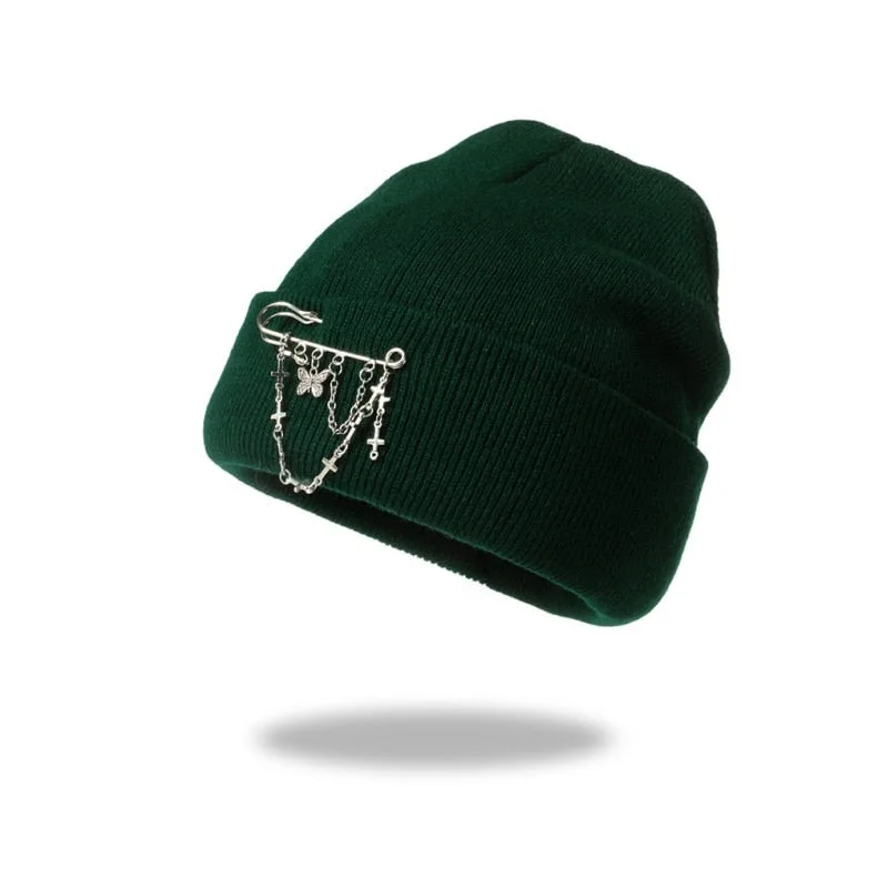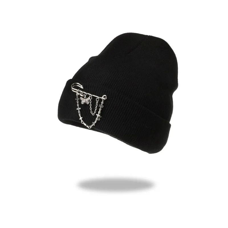 Entdecken Sie unseren Gotischen Hut Kette, das ideale Accessoire für alle, die den Emo-Punk-Stil und einen dunklen Look lieben. Dieses aus hochwertigem Acryl gestrickte Beanie vereint Stil und Funktionalität. Mit seinen einzigartigen Schmetterlingskettenmustern bringt dieser Hut eine düstere Eleganz in Ihre Wintergarderobe und hält Sie gleichzeitig warm bei all Ihren Winterabenteuern.