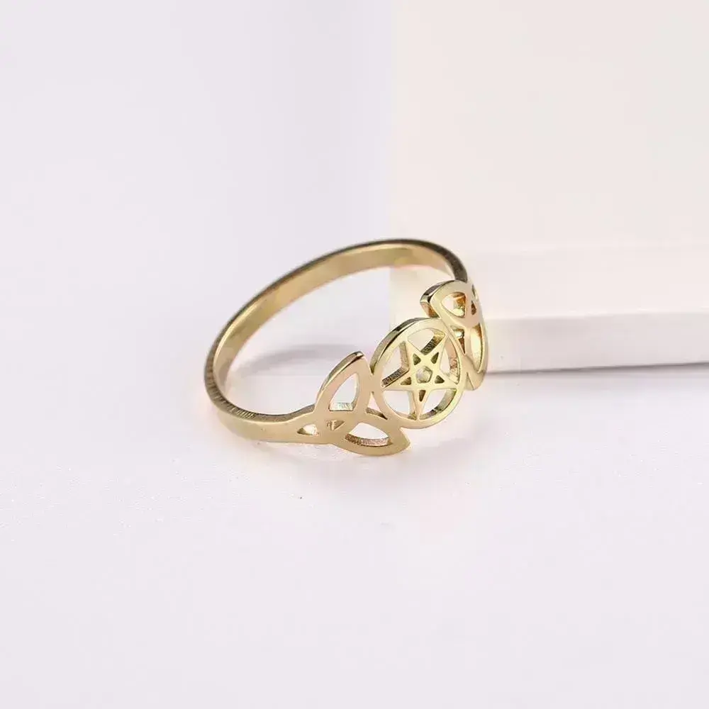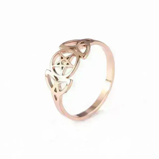 Gotischer Pentakelring aus Edelstahl mit keltischem Knoten. In 3 Farben erhältlich: Gold, Pink und Silber. Perfekt für alternative, rockige und feminine Outfits.