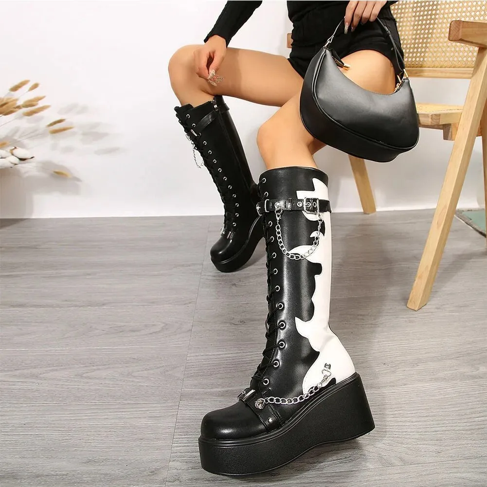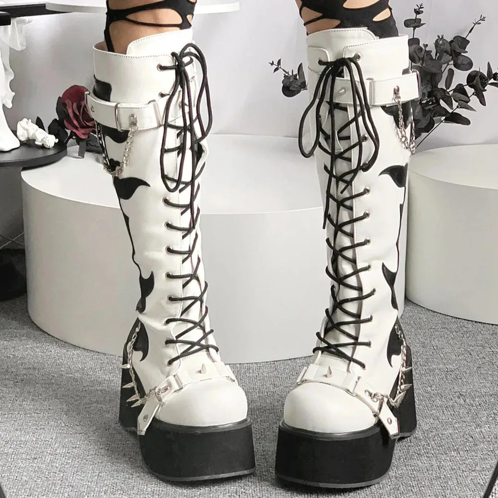 Entdecken Sie unseren Gotischen Plateaustiefel, das ultimative Accessoire mit einem Hauch von dunkler Eleganz, um Ihren alternativen Modestil zu perfektionieren. Diese außergewöhnlichen Stiefel kombiniert ein spektakuläres Design mit Komfort und Stabilität. Sie sind ideal für besondere Anlässe wie Konzerte, Festivals oder als Statement in Ihrem Alltag. Verleihen Sie Ihrem Look eine mystische Note und ziehen Sie mit diesem kühnen Schuhwerk garantiert alle Blicke auf sich.