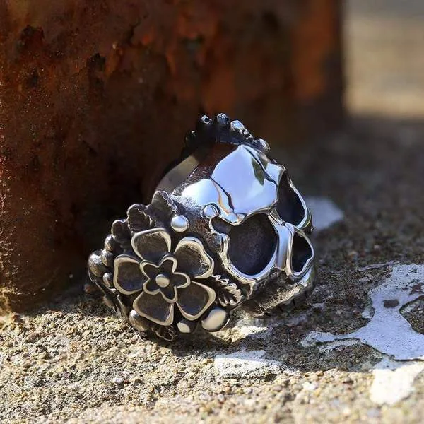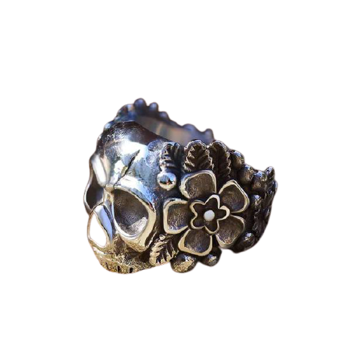 - Präzises Design: Fein gearbeitete Blumenmotive und Schädel-Details heben diesen Ring von anderen ab.