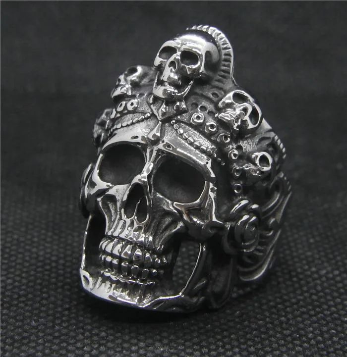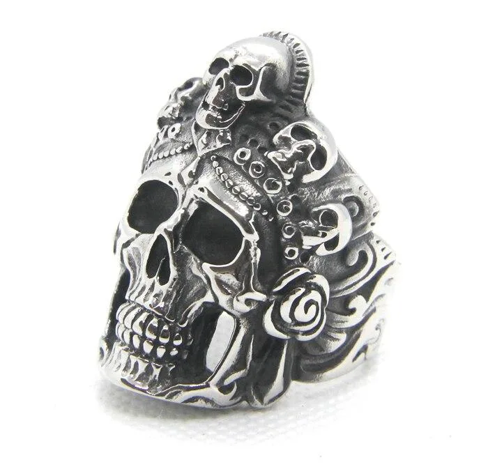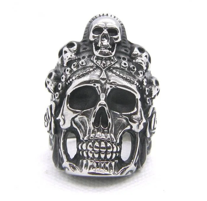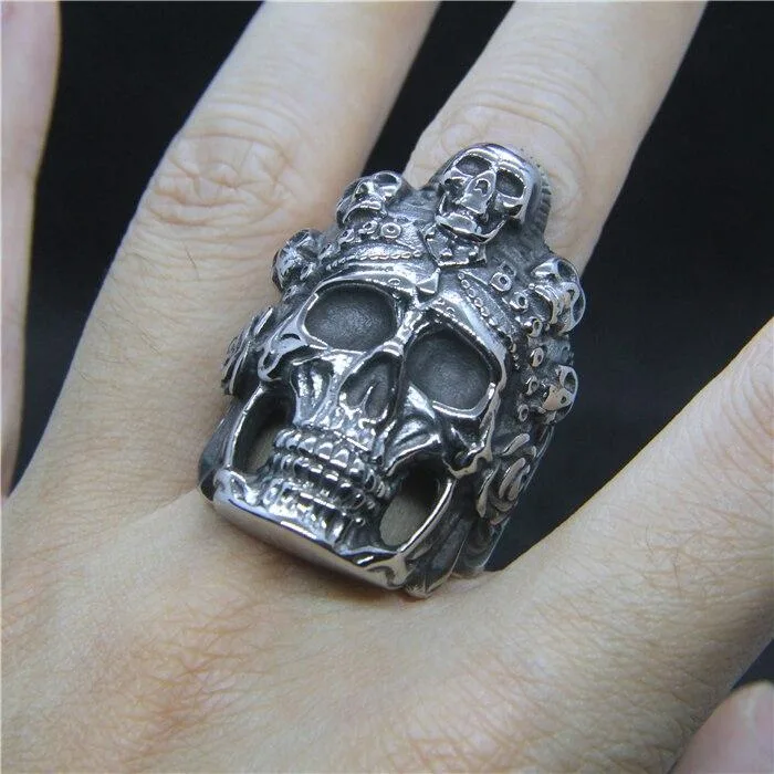• Einzigartiges Design: Der große Totenkopf wird durch fünf detaillierte kleinere Totenköpfe ergänzt, was dem Ring ein markantes und auffälliges Erscheinungsbild verleiht.