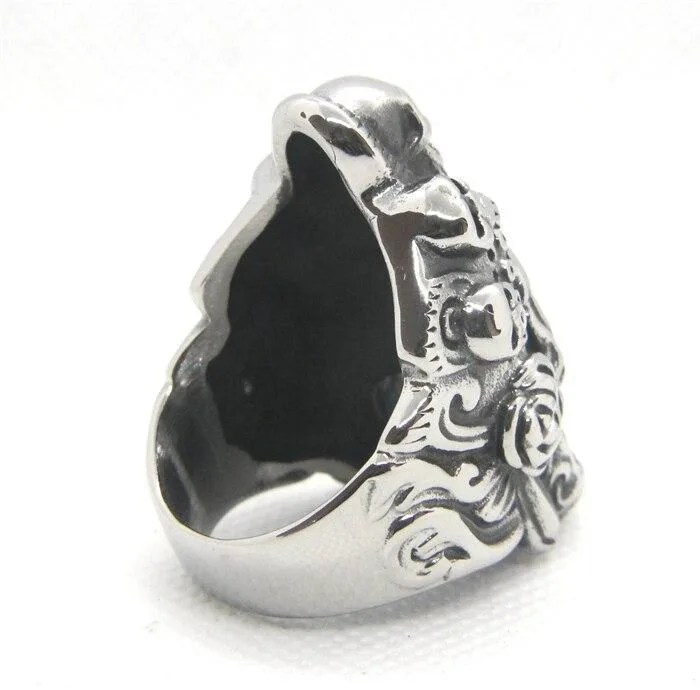 Entdecke den Gotischen Ring Satan Muerte: Ein einzigartiges, detailreiches Schmuckstück, das dunkle Eleganz und mystische Symbolik vereint.
