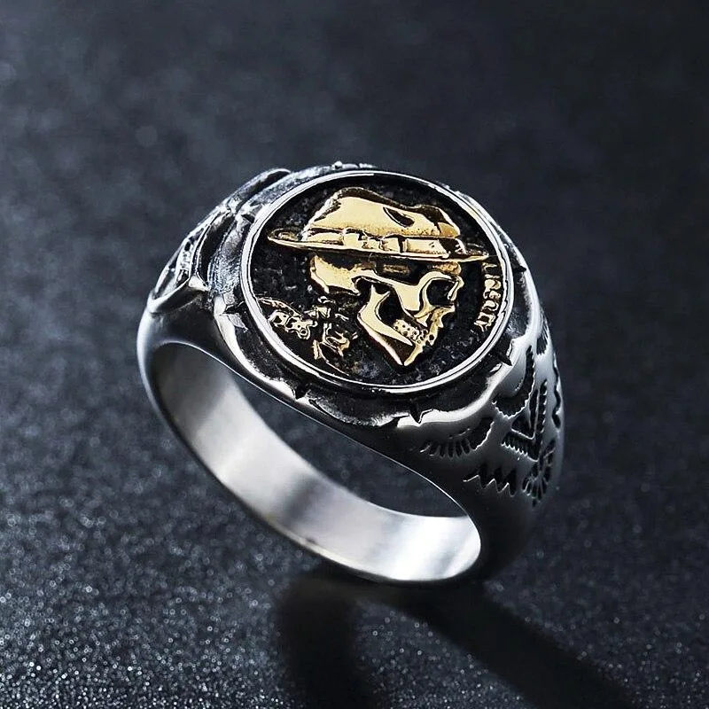 Entdecken Sie unseren Gotischer Ring Totenkopf von 1936, ein einzigartiges Schmuckstück, das den Geist der Gothic-Kultur perfekt einfängt. Hergestellt aus hochwertigem Edelstahl 316L, bietet dieser auffällige Ring einen Totenkopf, der mit seiner makabren und kraftvollen Präsenz alle Blicke auf sich zieht. Ideal für Biker, Liebhaber von Leder- und Rocker-Outfits oder einfach als Statement-Piece für den Alltag.