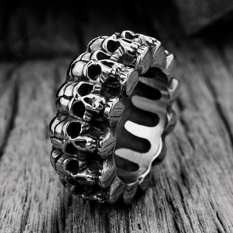 Der Gotischer Ring Totenkopf ist das ultimative Accessoire für all jene, die den Gothic-Stil mit einem Hauch von Einzigartigkeit lieben. Gefertigt aus hochwertigem Edelstahl 316L, kombiniert dieser außergewöhnliche Ring ein raffinertes Design mit langlebiger Qualität. Perfekt für jeden Anlass, verleiht der Gotischer Ring Totenkopf Ihrem Look eine markante und kraftvolle Note.