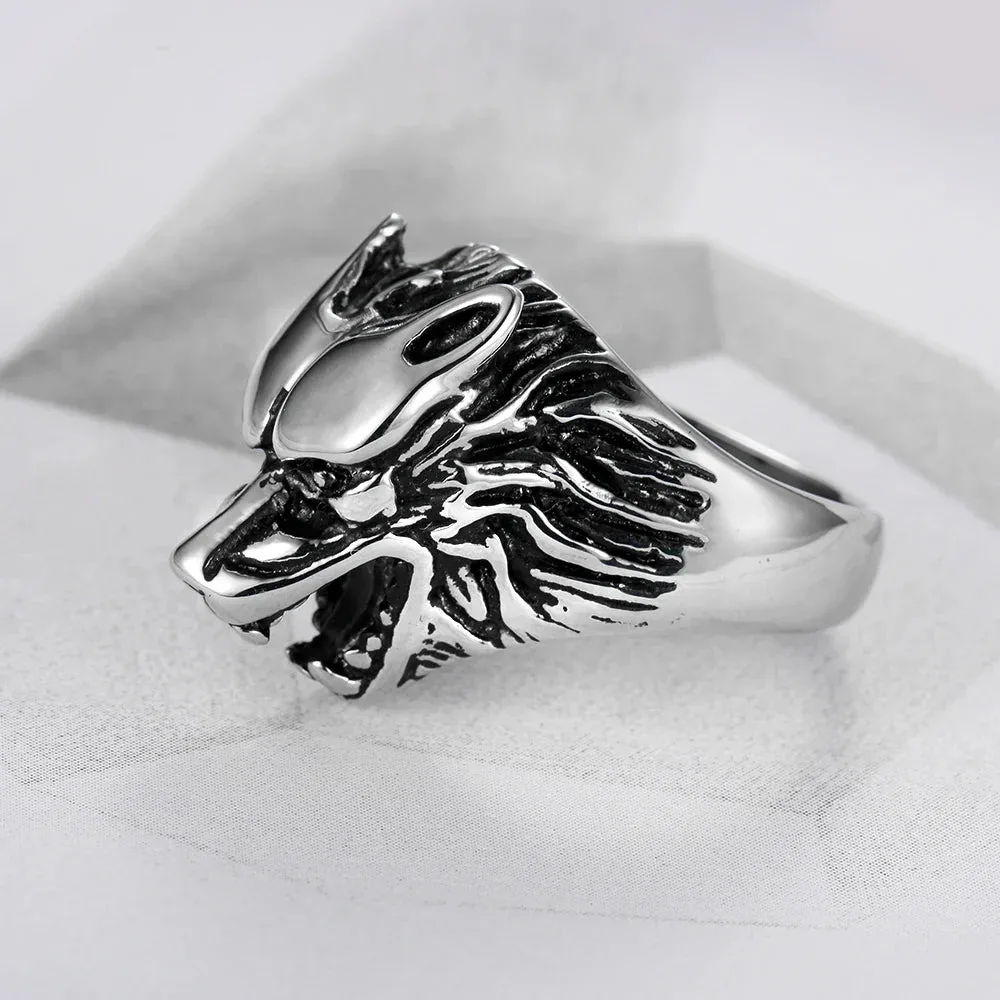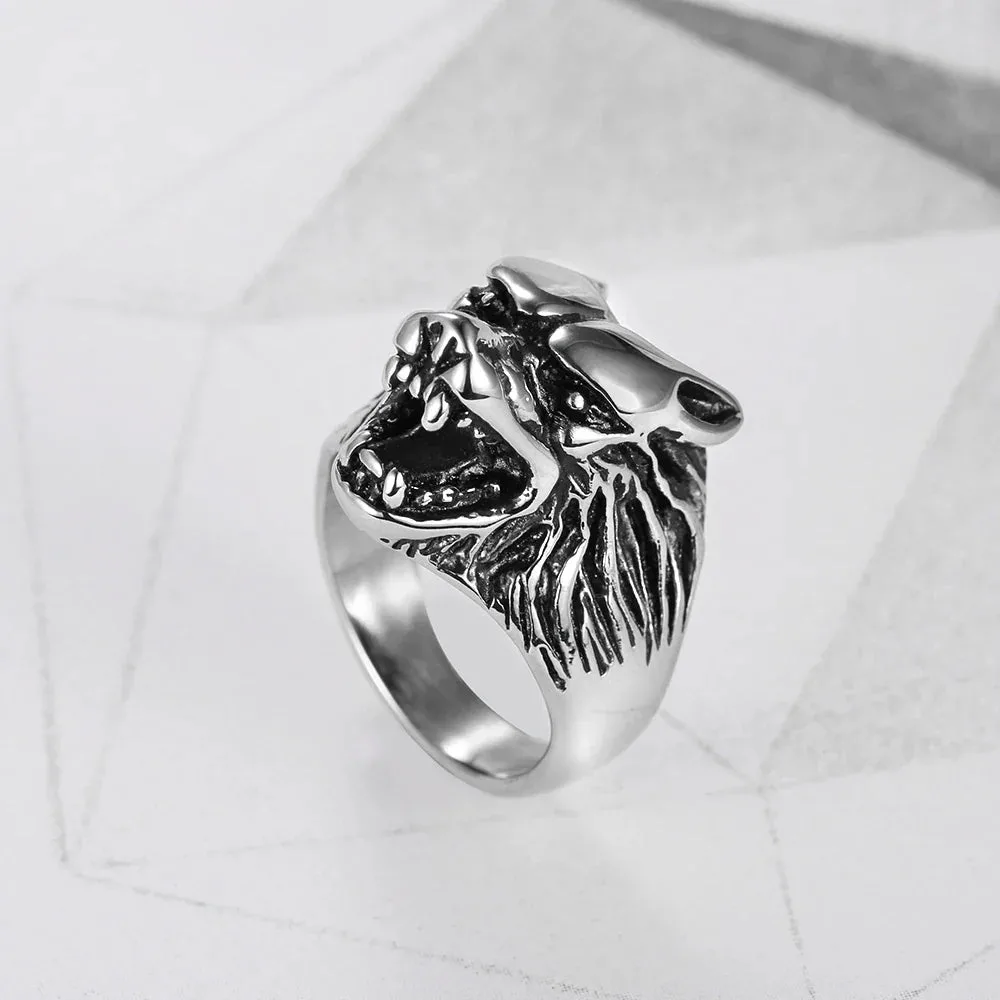 Gotischer Wikinger Wolfskopfring