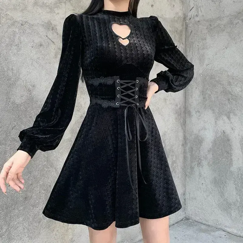 - Verführerische Details: Die Puffärmel und das durchbrochene Bustier mit Herzmuster verleihen dem Kleid einen romantischen, düsteren Look.