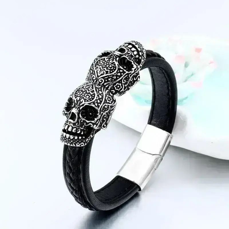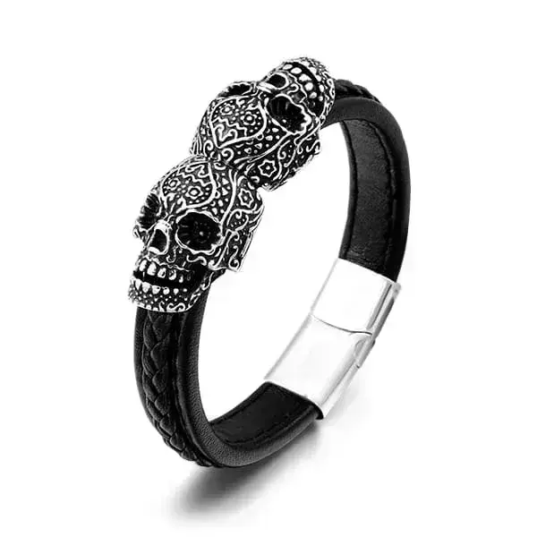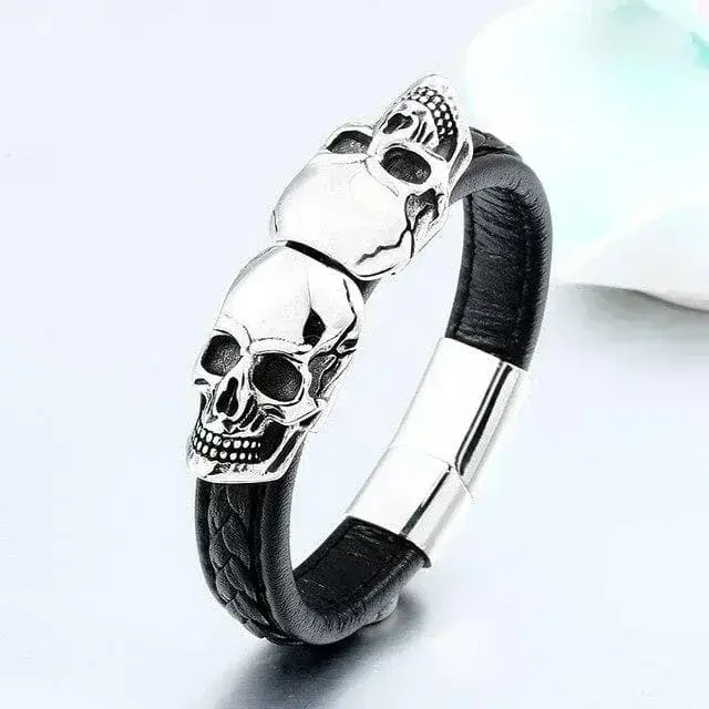 • Design: Zweifach-Totenkopf, geflochtener Lederriemen