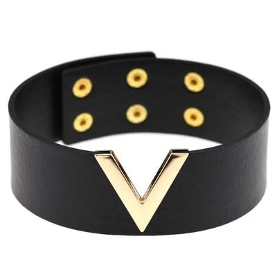 - Exquisites Design: Der goldene V-förmige Anhänger auf der Vorderseite verleiht dem Halsband einen luxuriösen Touch.