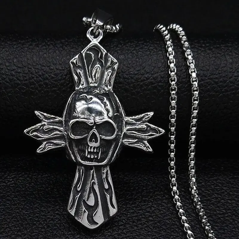 - Einzigartiges Design: Der markante Anhänger mit Kreuz und Totenkopf symbolisiert die Macht und die Dunkelheit des Gothic-Stils.