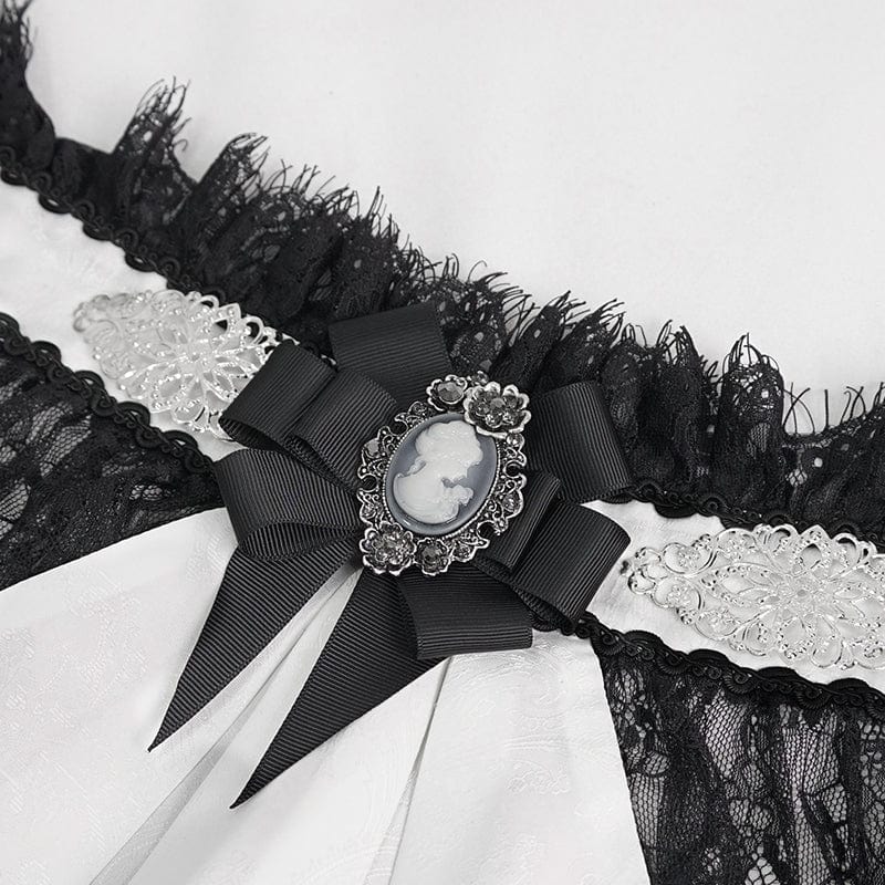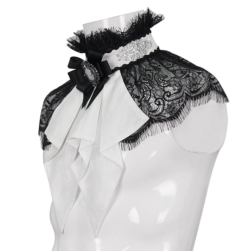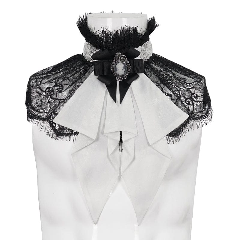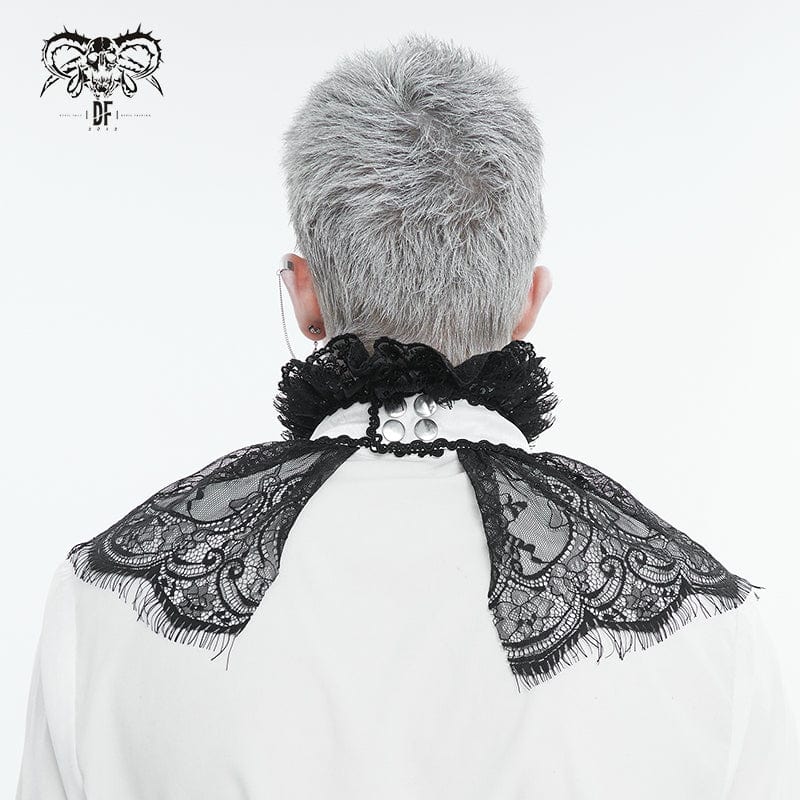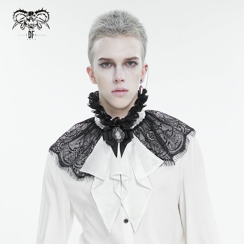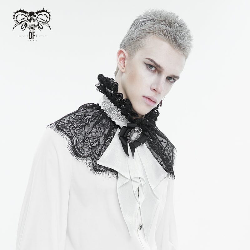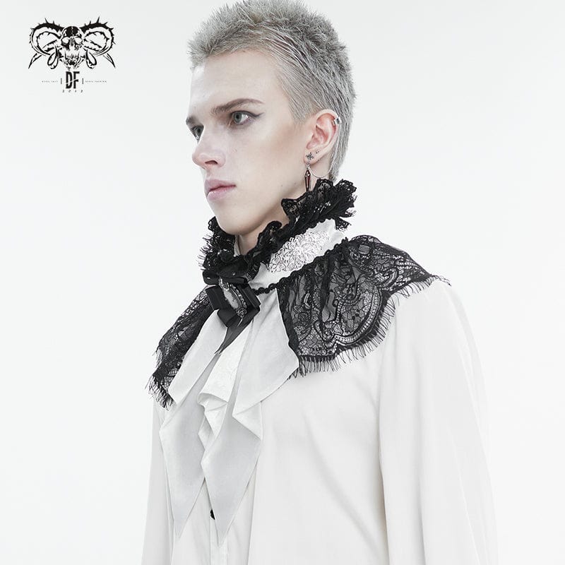 Verpassen Sie nicht die Gelegenheit, Ihre Garderobe mit dieser Herren-Krawatte im Gothic-Stil mit Stehkragen und Spitzenspleiß, weiß zu ergänzen. Ein stilvolles Statement für jeden Gothic-Liebhaber – ideal für elegante Anlässe!