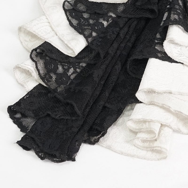 - Einzigartiges Design: Die mehrlagige Spitze und die kontrastierenden Farben schaffen ein unvergleichliches Gothic-Akzent.