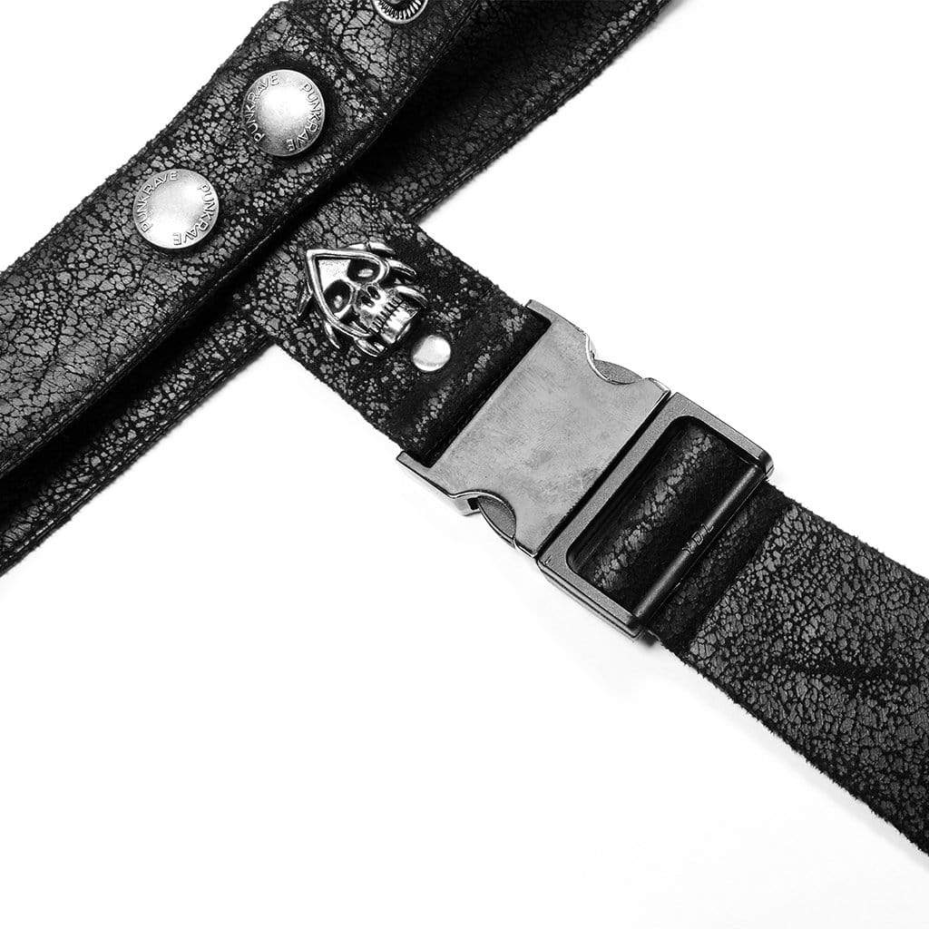 Herren-Krawatte mit Punk-Schädel und Schnallen, schwarz