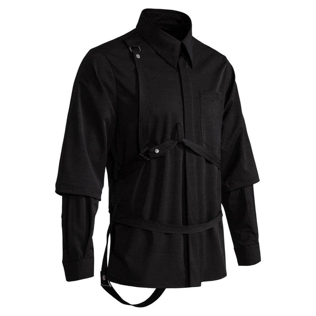 Entdecken Sie unser Herren-Punk-Hemd mit zweiteiligen Trägern, das ideale Hemd für Fans des einzigartigen Punk-Stils. Dieses schwarze Herrenhemd aus hochwertigem Polyamid vereint moderne Ästhetik und hohen Tragekomfort. Dank seiner zweiteilig gestalteten Träger und der standardmäßigen Länge eignet es sich perfekt sowohl für den Alltag als auch für edgy Partys.