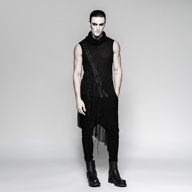 Tragen Sie dieses Herren-Tanktops mit Stehkragen und Quasten mit einem passenden Gothic-Top, zusammen mit unserer Auswahl an Gothic-Punk-Accessoires oder kombiniere es mit Gothic Fashion Kleidung für einen harmonischen Look.