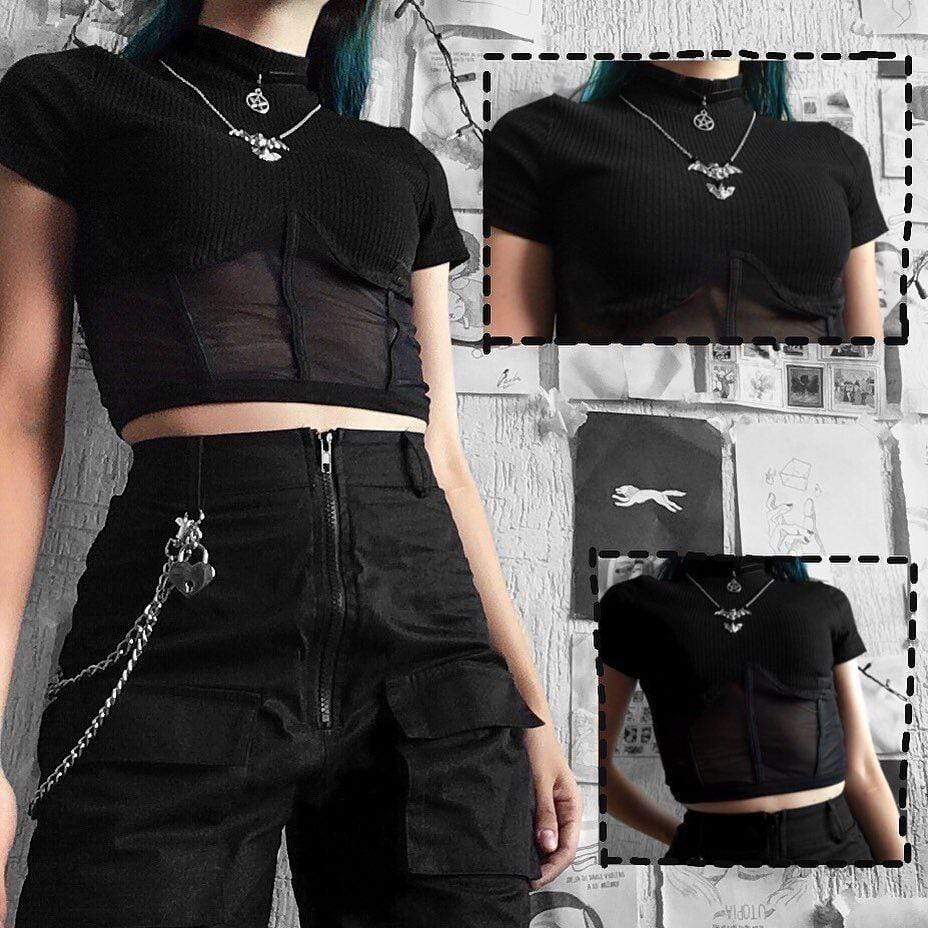 Kombinieren Sie dieses hochgeschlossene, figurbetonte Netzoberteil mit einem Gothic Style Top oder einer damenhaften Gothic Bluse für ein perfektes Ensemble. Vervollständigen Sie Ihren Look mit unseren Gothic Crop Tops, um Ihrem Outfit einen zusätzlichen Akzent zu verleihen.