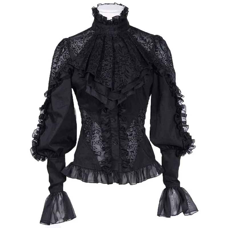 Entdecken Sie unser Hochgotisch Viktorianisch, die perfekte Bluse für Liebhaber des viktorianischen Gothic-Stils. Dieses außergewöhnliche Kleidungsstück kombiniert Eleganz mit einem Hauch von Nostalgie, dank seines raffinierten Designs, bestehend aus Spitze und hochwertigen Materialien wie Baumwolle und Polyester. Ob für Abendveranstaltungen oder den täglichen Gebrauch – die Hochgotisch Viktorianisch ist der ideale Begleiter.