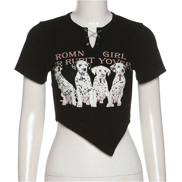 Schreibe die erste Rezension für „Kurzärmliges Crop-Top im Grunge-Stil für Damen mit Spotty Dog-Motiv“