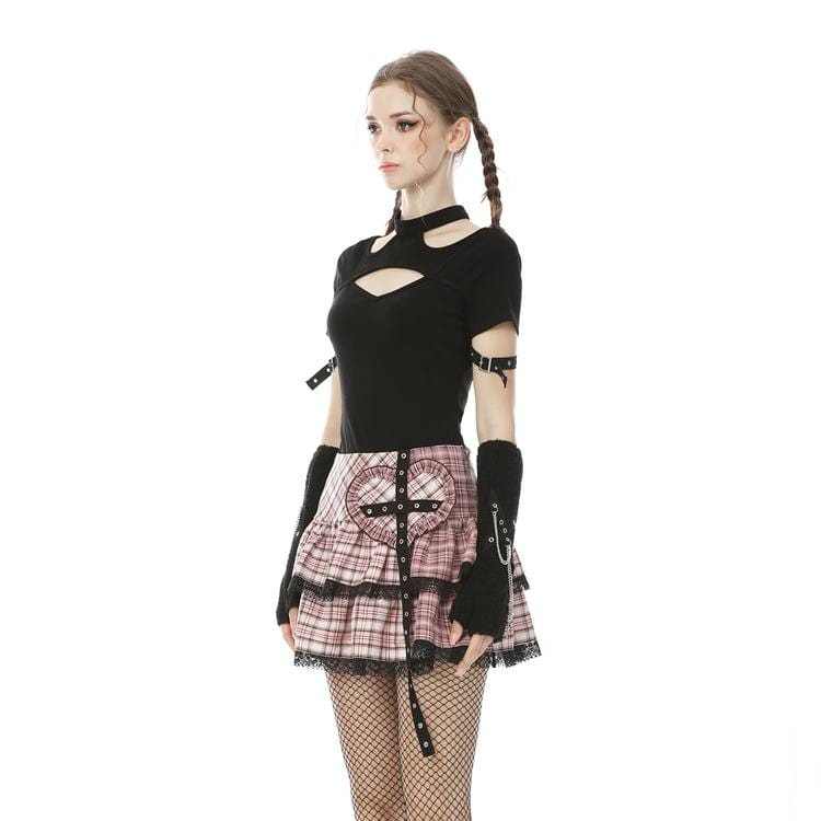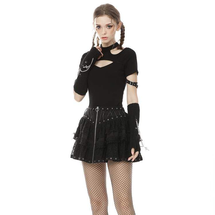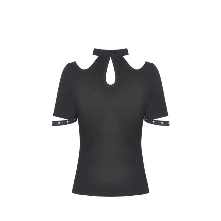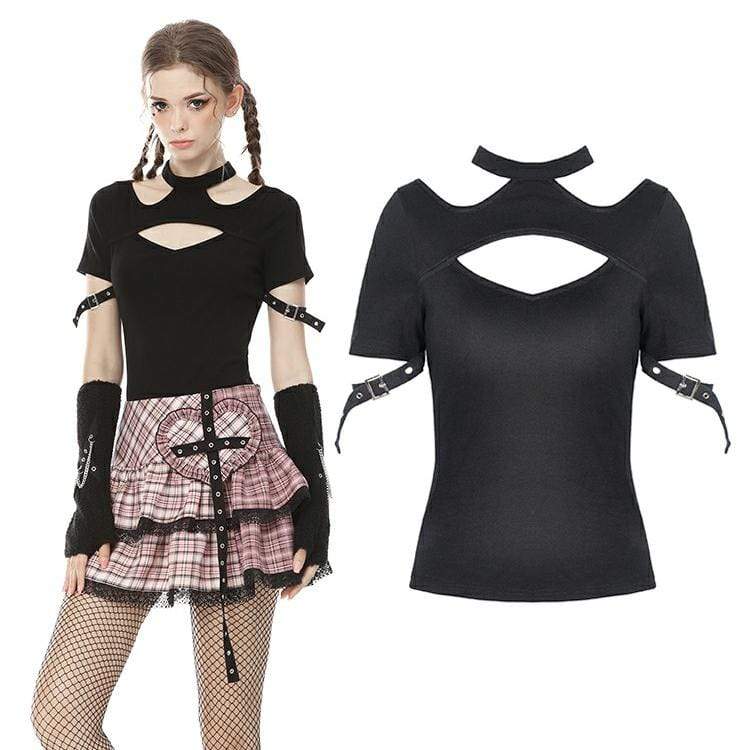 Verpassen Sie nicht die Gelegenheit, Ihren Gothic-Style mit unserem Kurzärmliges Neckholder-T-Shirt mit Punk-Ausschnitt für Damen zu vervollständigen. Perfekt für den einzigartigen Auftritt – direkt verfügbar in Ihrer Größe!