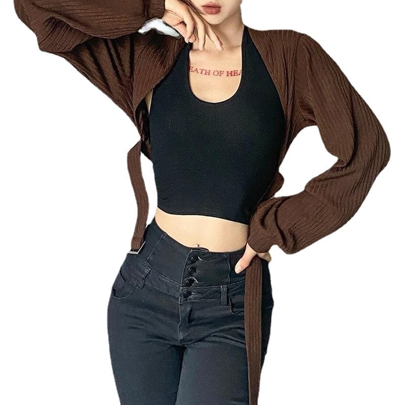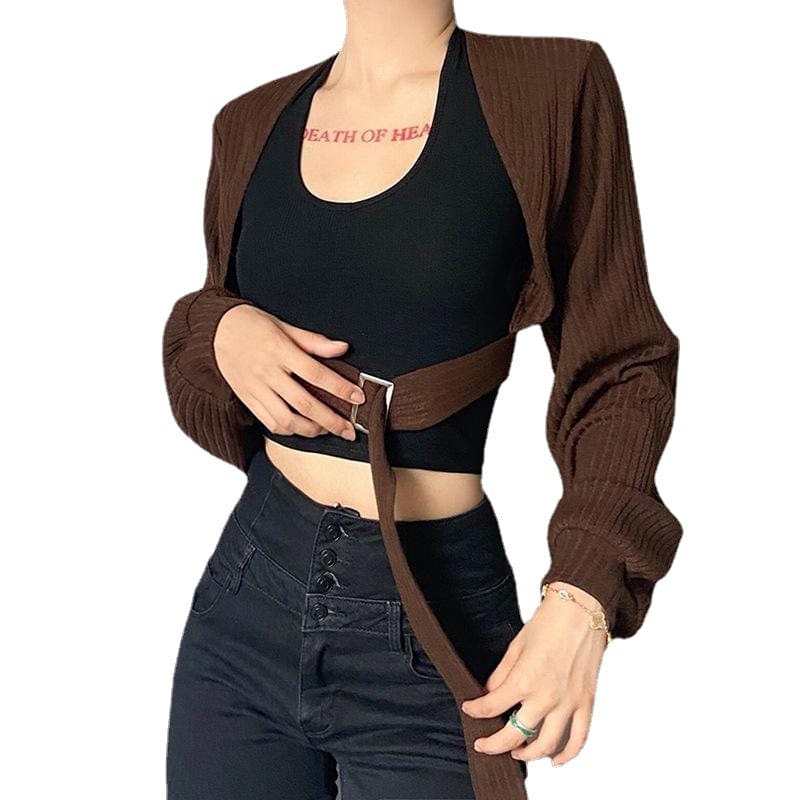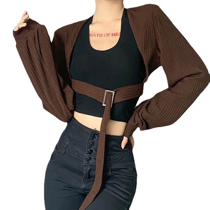 Entdecke den stylischen kurzen Cardigan für Damen mit Punk-Fledermausärmeln und trendiger Schnalle – perfekt für einen ausgefallenen Look!