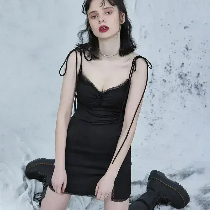 • Design: Minikleid mit schwarzer Spitze und verstellbaren Trägern