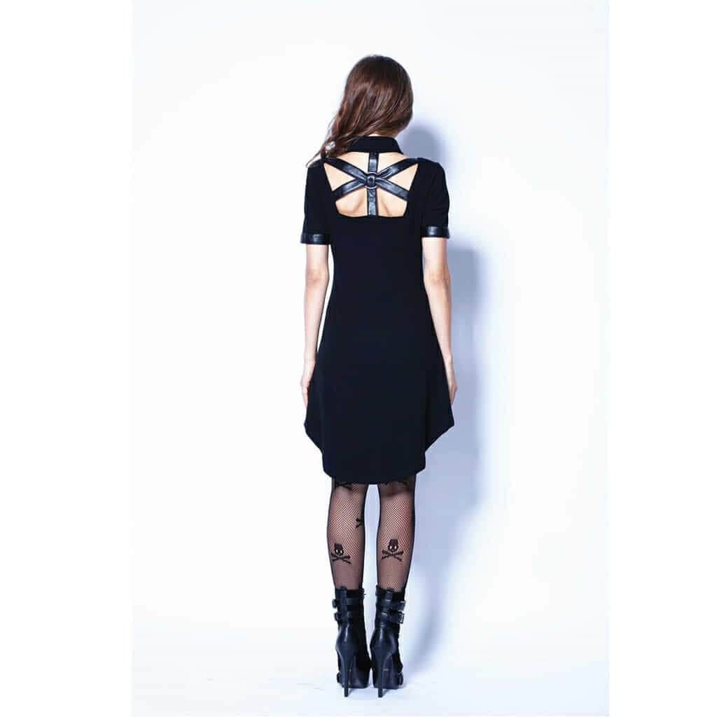 Kurzes schwarzes Gothic-Kleid aus Kunstleder für Damen mit detaillierten Details