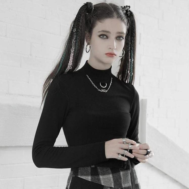 Schreibe die erste Rezension für „Langärmelige, taillierte T-Shirts mit Grunge-Stehkragen für Damen und Halskette“