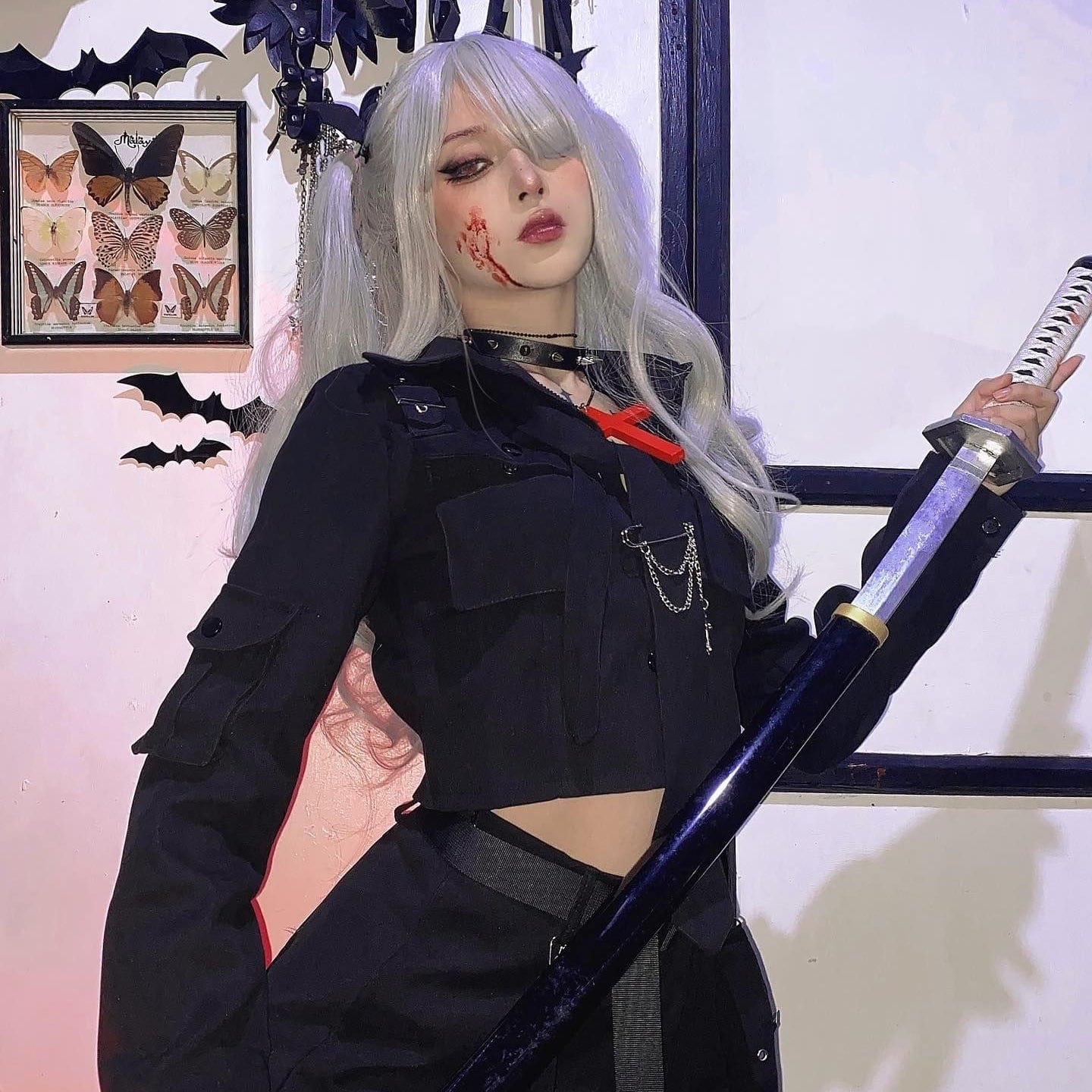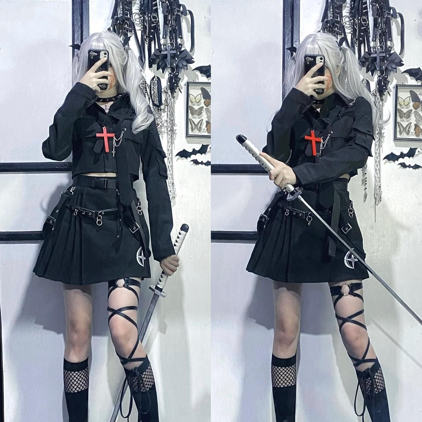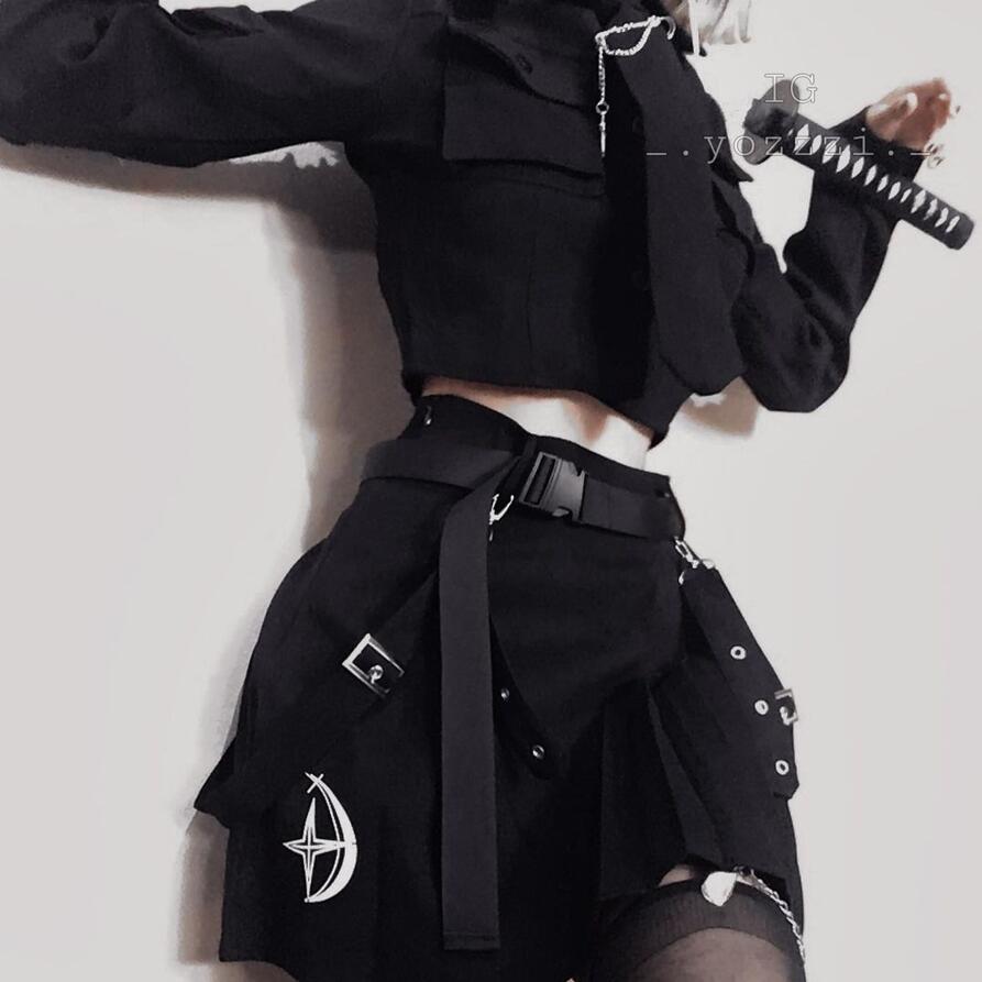 Verpassen Sie nicht die Gelegenheit, Ihren Gothic-Style mit diesem langärmeligen schwarzen Grunge-Anzug für Damen mit Gürtel auf ein neues Level zu bringen. Perfekt für jeden Anlass – holen Sie sich Ihren heute noch!