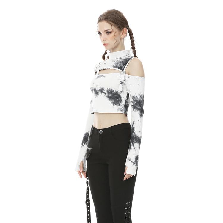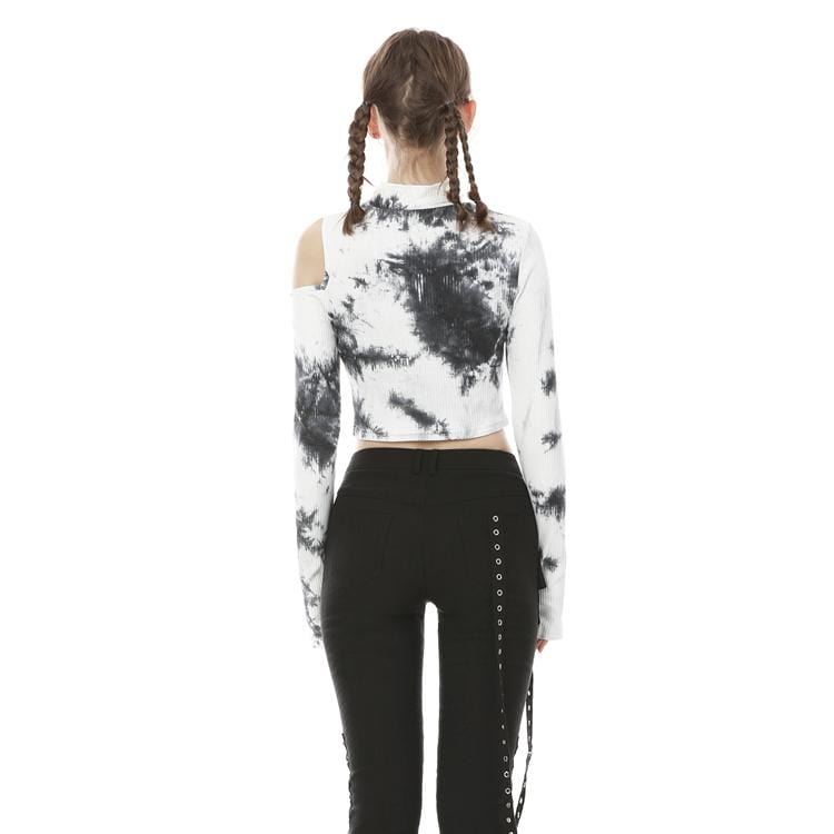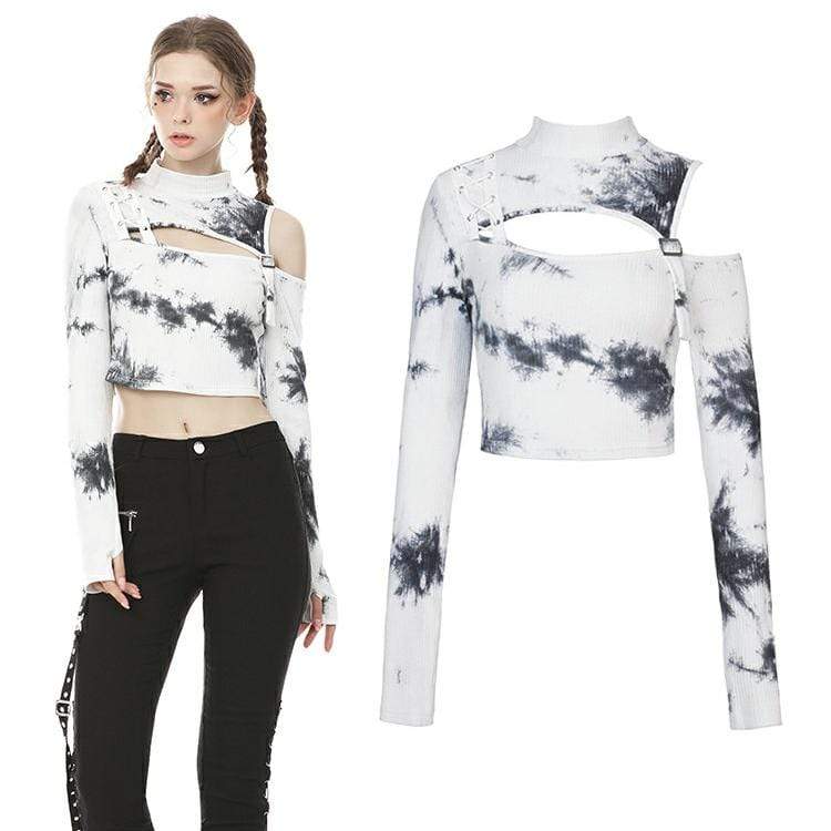 Langärmlige Crop-Tops für Damen mit Batikmuster und Ausschnitten