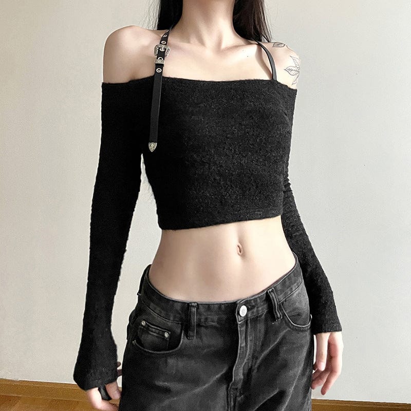 Kombinieren Sie dieses Langärmliges Crop-Top mit Neckholder im Grunge-Stil für Damen mit einem Gothic Top oder einem Gothic Leggings für einen unverwechselbaren Style. Ergänzen Sie Ihren Look mit unseren Damen-Oberteilen im Gothic-Stil, um den ultimativen Gothic-Chic zu verwirklichen.