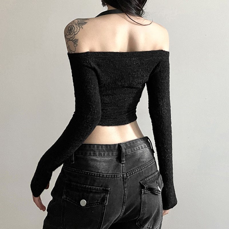 Verpassen Sie nicht die Gelegenheit, Ihren Kleiderschrank mit diesem Langärmliges Crop-Top mit Neckholder im Grunge-Stil für Damen auf ein neues Level zu bringen. Perfekt für die Trendsetterin in Ihnen – jetzt verfügbar in drei aufregenden Farben!