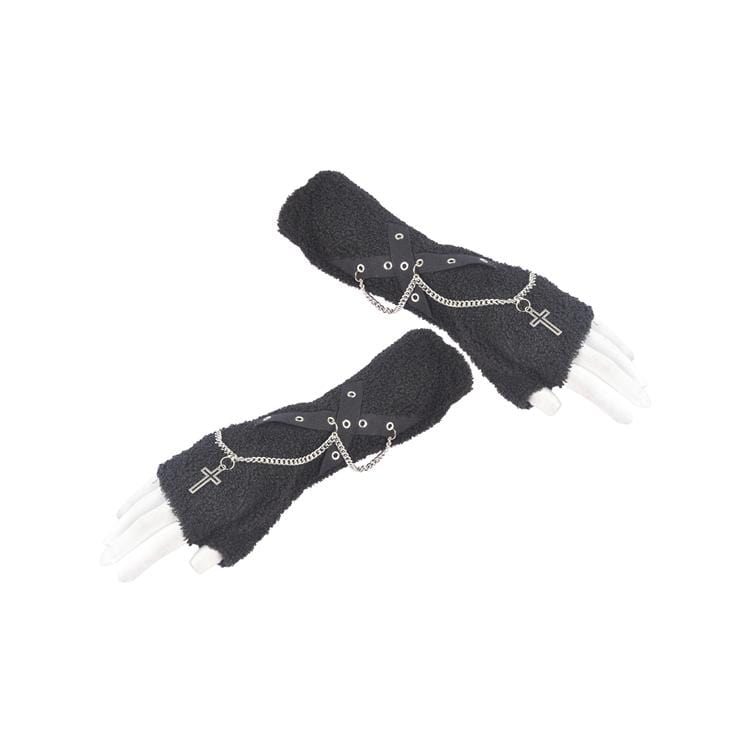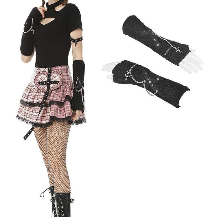 Lange Gothic-Handschuhe für Damen mit Metallketten