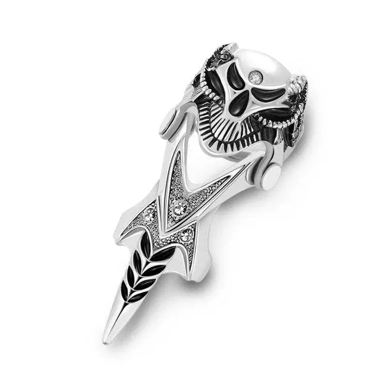 Entdecken Sie unseren Langer Gothic Ring, ein absolutes Must-Have für alle Liebhaber des dunklen und unverwechselbaren Gothic-Stils. Hergestellt aus hochwertigem Edelstahl, bietet dieses Schmuckstück eine hervorragende Haltbarkeit und besticht durch seine auffälligen Details wie den bösen Schädel und die funkelnden Zirkonia-Steine. Ob für besondere Anlässe, wie Halloween, oder für den Alltag – dieser lange Gothic Ring ist ein wahres Statement für Ihre Einzigartigkeit.
