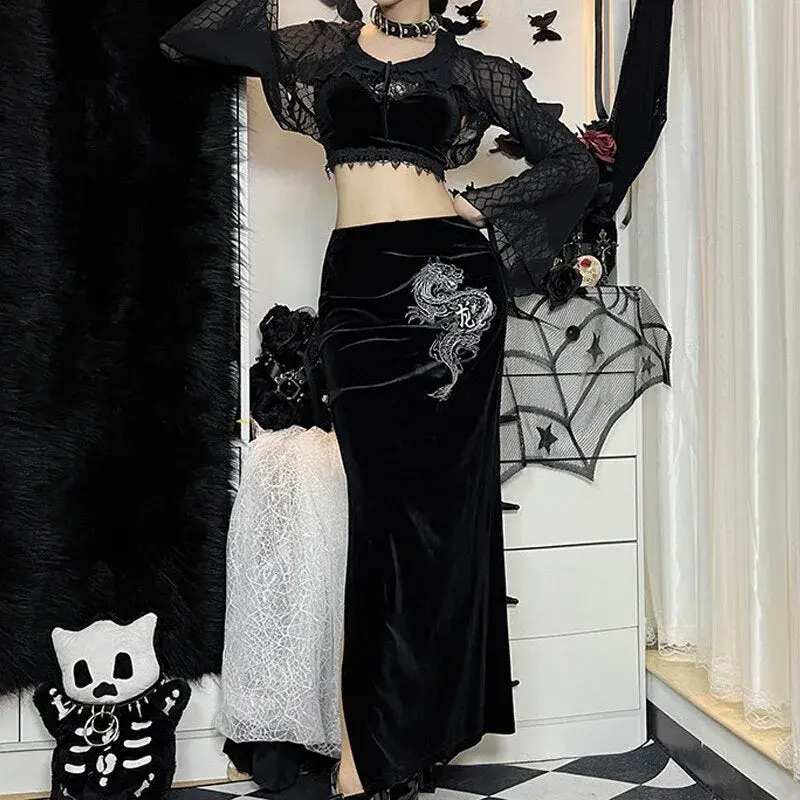 Langer Gothic Samtrock für Damen