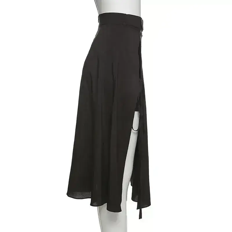 Erleben Sie den raffinierten langen schwarzen Gothic Rock, der das Herzstück Ihrer gothischen Garderobe sein wird. Mit seiner eleganten Mischung aus Polyester und Baumwolle ist dieser Rock ideal für Fans des einfarbigen Gothic-Looks. Ob für den Frühling oder Herbst – dieser lange Rock, ausgestattet mit einem Unterrock und einem stilvollen Gürtel, wird Ihnen zu einem verführerischen Auftritt verhelfen.
