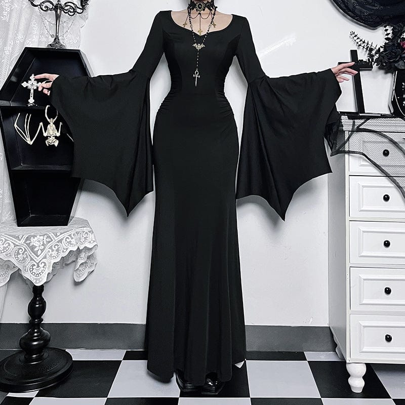 Langes Gothic-Kleid im Meerjungfrau-Stil mit Fledermausärmeln für Damen
