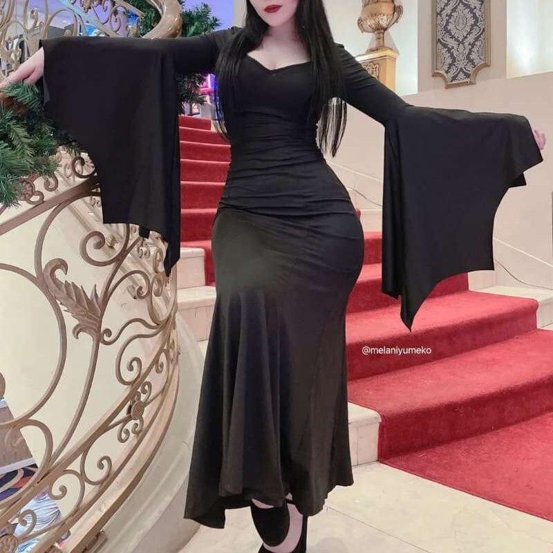 Entdecken Sie unser einzigartiges Langes Gothic-Kleid im Meerjungfrau-Stil mit Fledermausärmeln für Damen, das ultimativen Glamour mit einem düsteren, eleganten Look verbindet. Perfekt für Liebhaber des Gothic-Stils, bietet dieses atemberaubende Kleid eine exquisite Passform und einen faszinierenden Meerjungfrauenschnitt, der Ihre Figur hervorragend betont. Ob für besondere Anlässe, Gothic-Festivals oder Halloween-Partys – dieses Kleid ist ein absoluter Hingucker.