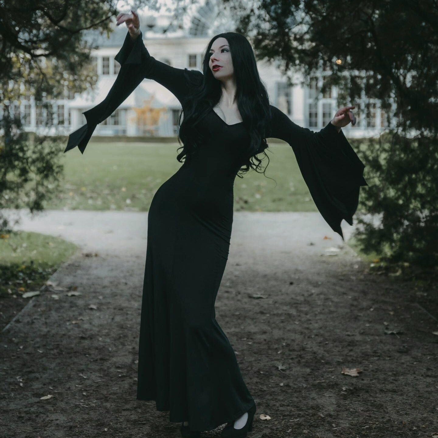 - Elegantes Design: Ein raffinierter Meerjungfrau-Stil und dramatische Fledermausärmel verleihen dem Kleid mystische und verführerische Akzente.