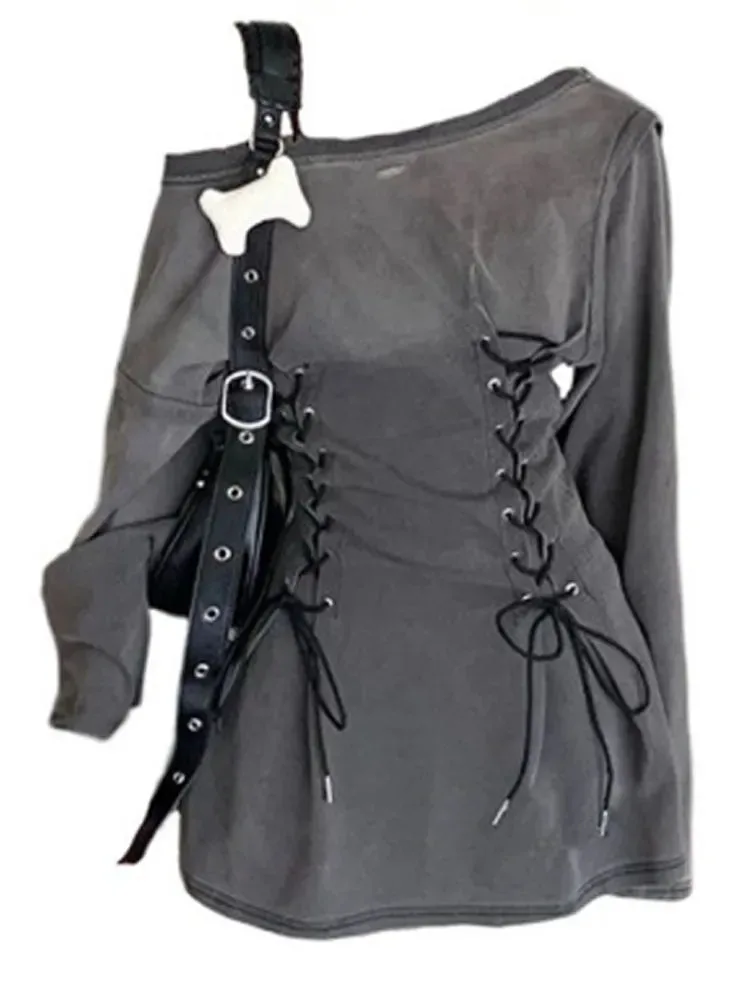 - Design: Gothic-Grunge-Ästhetik mit Schnürung und Einkerbungen