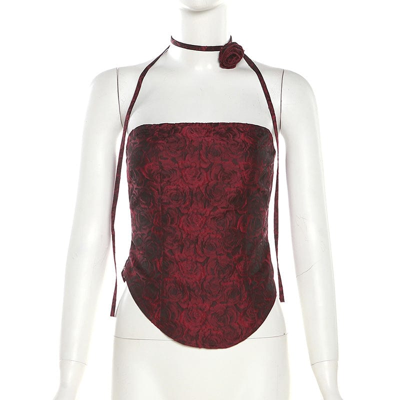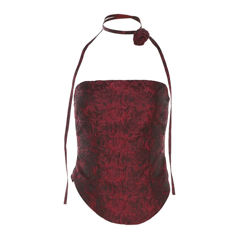 „Stilvolles Neckholder-Tanktop für Damen mit eindrucksvollem Gothic-Rosen-Print. Perfekt für einen ausdrucksstarken und einzigartigen Look!“