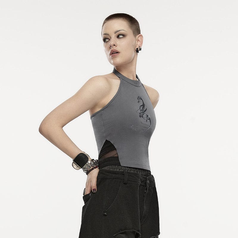Neckholder-Tanktop mit Punk-Drachen-Print für Damen