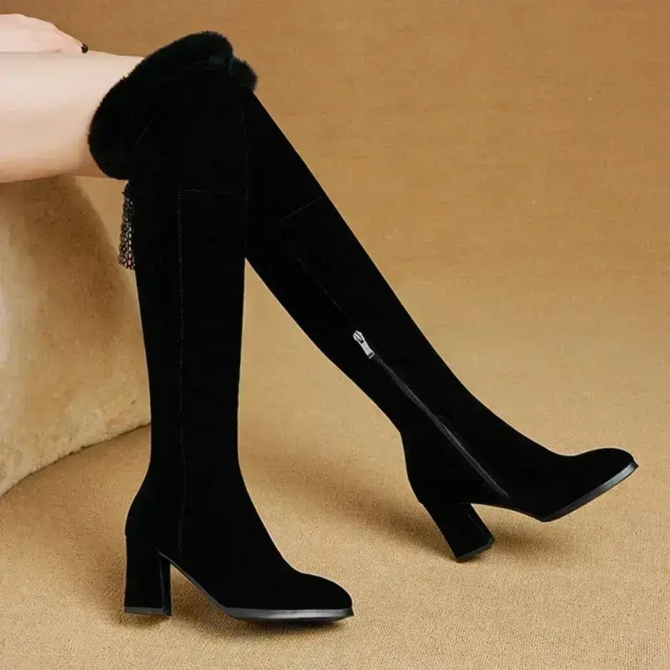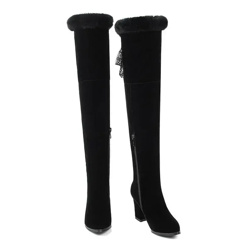 Entdecken Sie unsere Oberschenkelhohen Stiefel im Gothic Stil, die perfekte Ergänzung für jedes Gothic-Outfit. Diese schwarzen Stiefel aus hochwertigem Wildleder und Kunstfell bieten nicht nur stilvollen Komfort, sondern halten Sie auch bei kältesten Temperaturen warm. Ob für einen Spaziergang im Herbst oder eine Winterparty – diese Overknee-Stiefel sorgen dafür, dass Sie mit einem Hauch von Gothic-Eleganz immer im Mittelpunkt stehen.