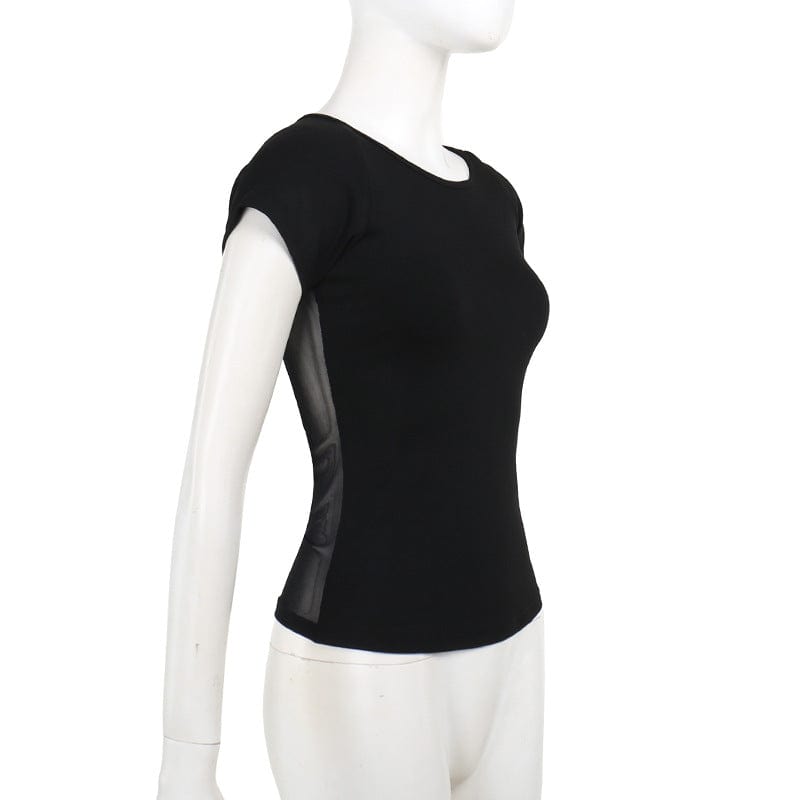 Punk Angel Flocking Mesh Splice T-Shirt für Damen