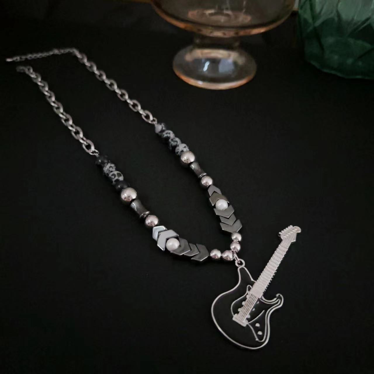 - Design: Punk-inspiriertes Halsband mit Gitarren-Anhänger
