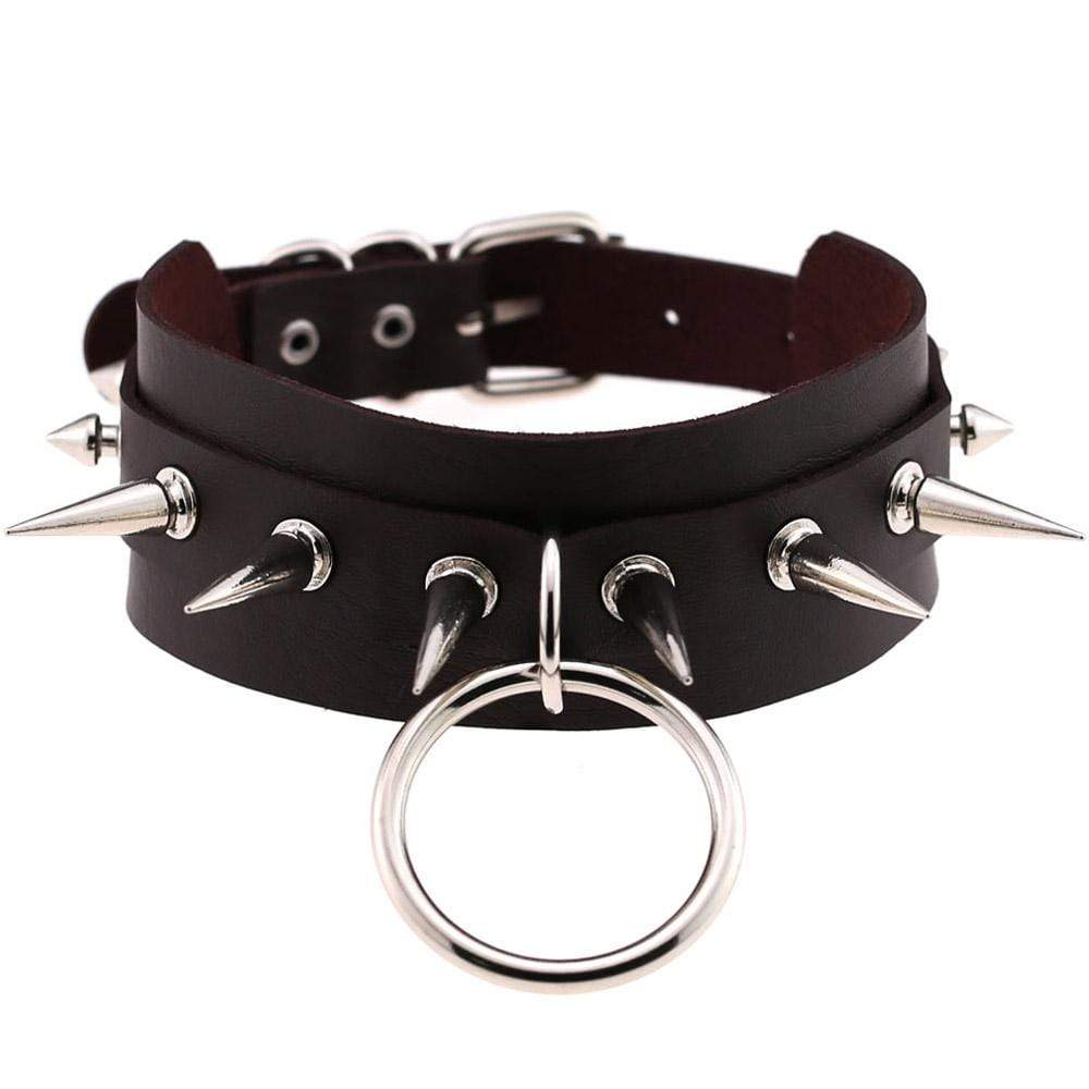Punk-Halsreifen aus Kunstleder mit Metallnieten für Damen