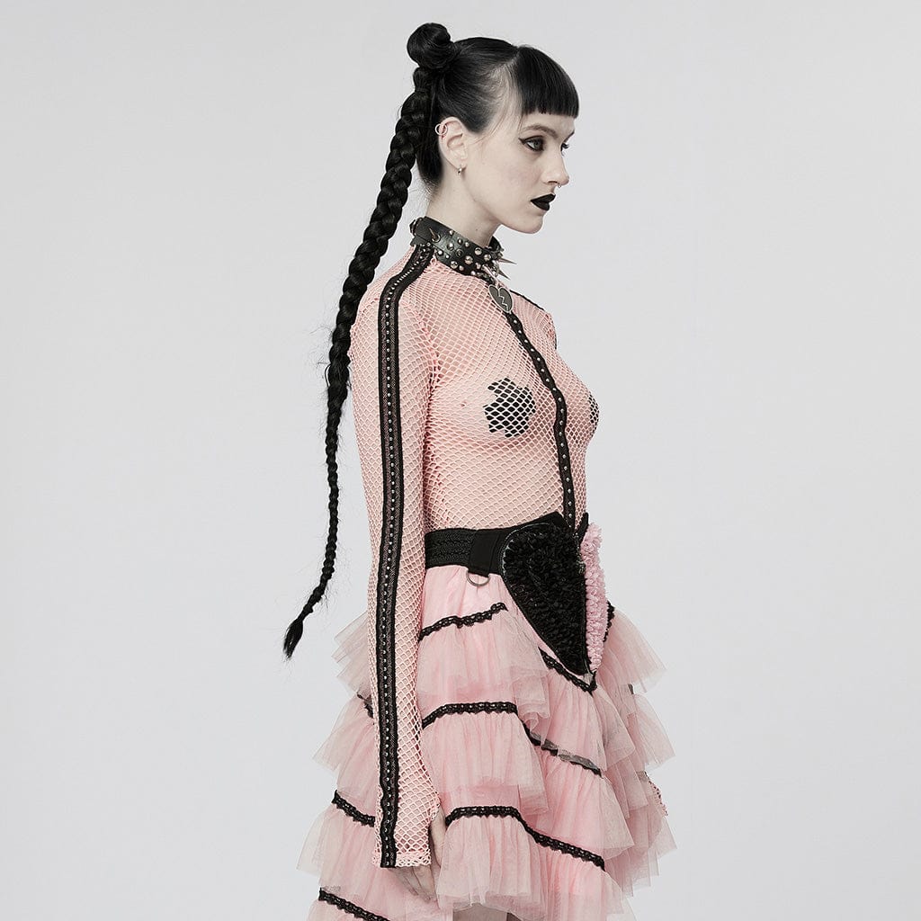 Punk Nailed Sheer Mesh Top für Damen