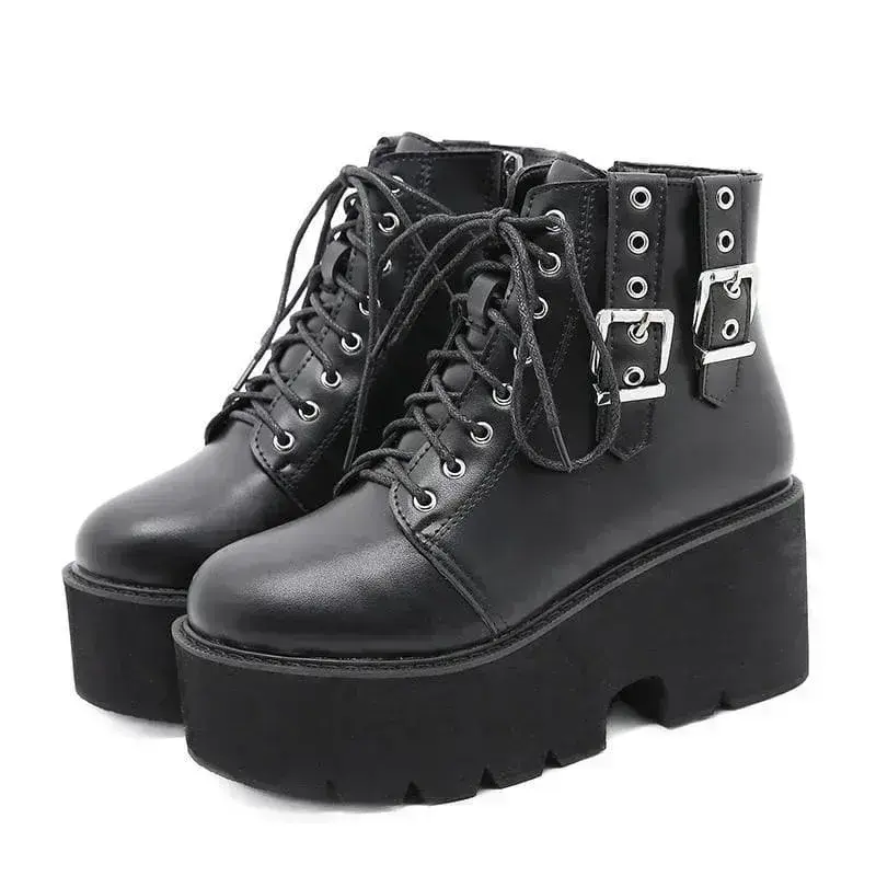 - Hauptvorteil 3: Stilvolle Details wie silberne Ösen, Schnürsenkel und zusätzliche Riemen betonen den einzigartigen Gothic-Punk-Look.