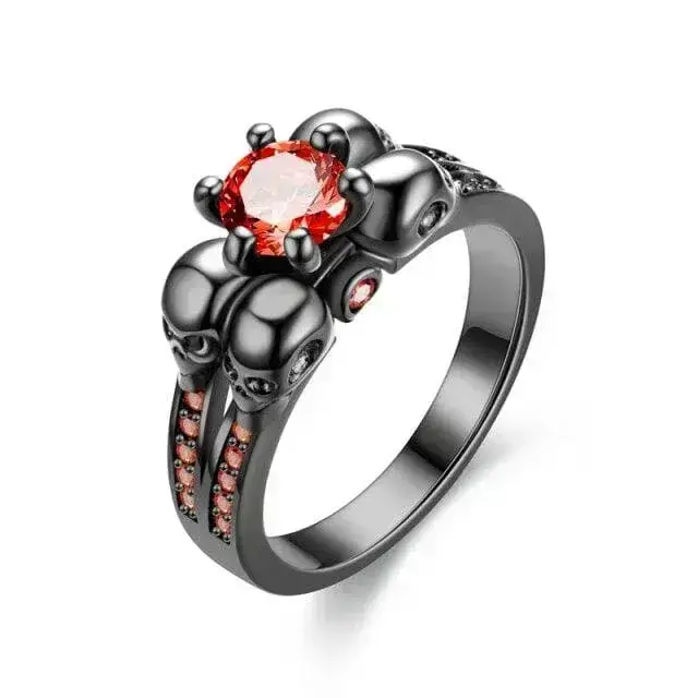 - Elegantes Totenkopf-Design: Zwei Totenköpfe auf beiden Seiten des roten Steins verströmen eine düstere, mystische Aura.