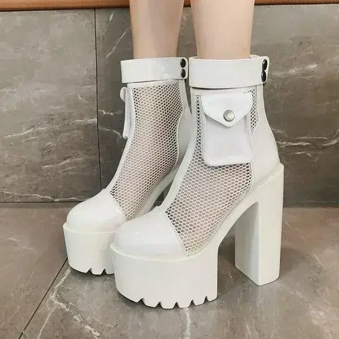 - Elegantes Design: Diese Stiefeletten verfügen über durchbrochenen Stoff, der einem klassischen Gothic-Look eine stilvolle Note verleiht.
