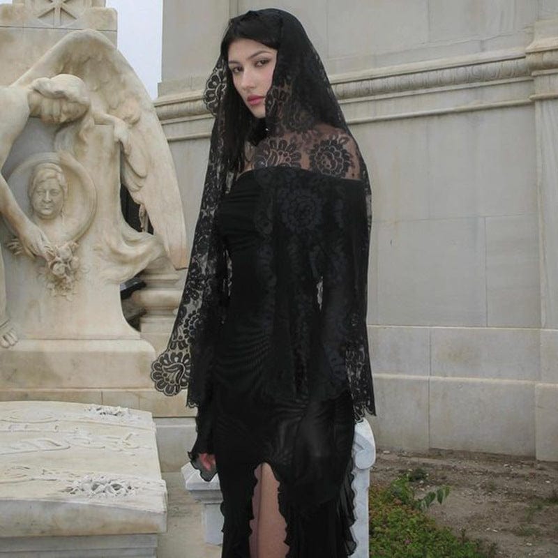 Kombinieren Sie dieses Schulterfreies, gerüschtes Schlitzkleid für Damen im Gothic-Stil mit festlichen Gothic-Kleidern oder langen Gothic-Kleidern, um einen atemberaubenden Look zu kreieren. Ergänzen Sie Ihren Stil mit einem Accessoire aus unserer Schwarze-Gothic-Kleider-Kollektion für das perfekte Finish.