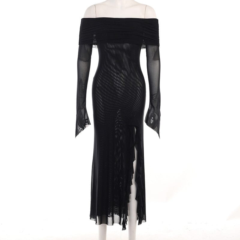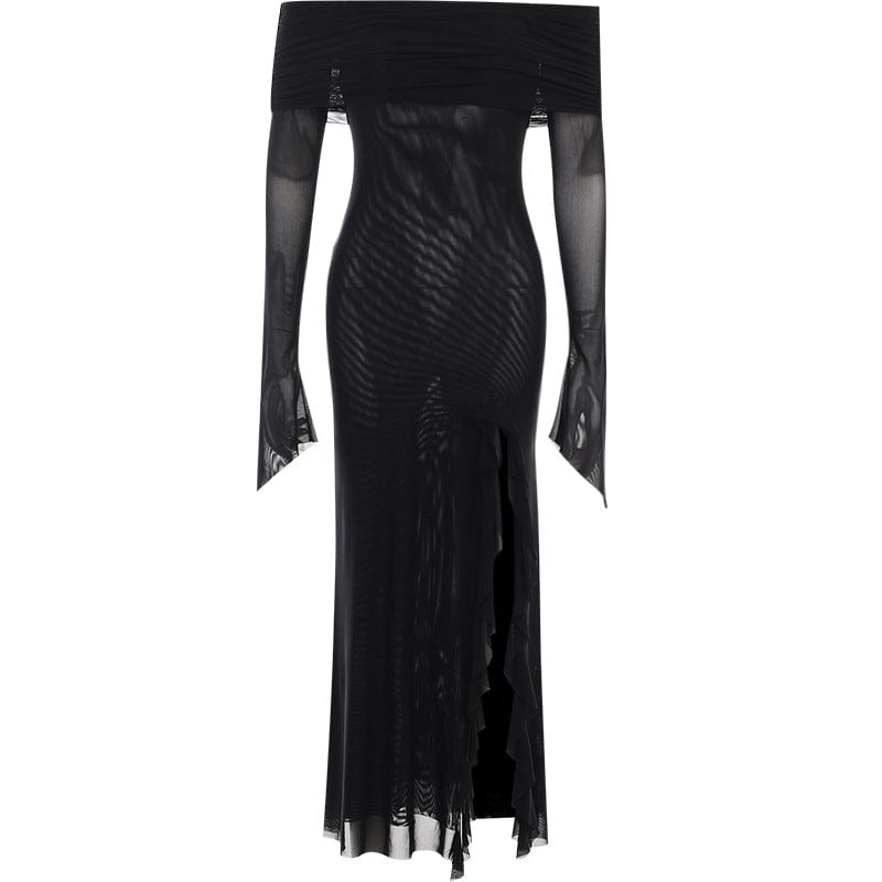 Schulterfreies, gerüschtes Schlitzkleid für Damen im Gothic-Stil